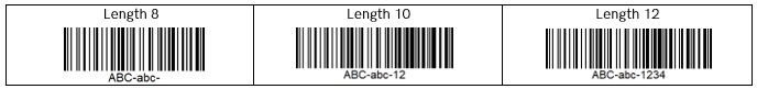 ADF allows the checking of discrete lengths, lengths within a range, lengths below a value, lengths above a value. To illustrate length checking we have some sample barcodes: