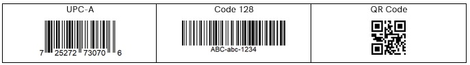 To illustrate symbology type checking we have some sample barcodes: