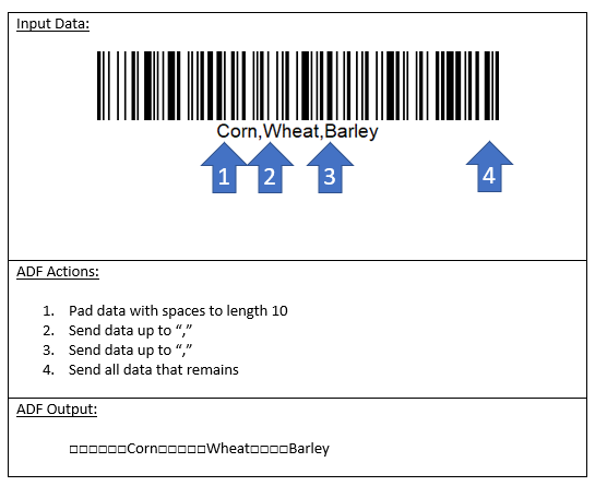ADF can be used to process barcode data of any length and prepare it for transmission to a host device.
