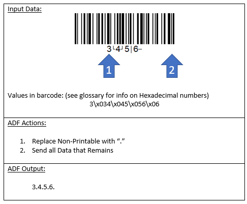 ADF has an action called “Replace Non-Printable” that substitutes all non-printable characters with a single ASCII character, such as a period “.”. But what if you want to see what the specific non-printable characters are in the barcodes that you scan.