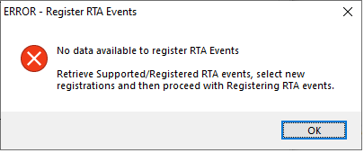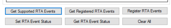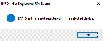 NOTE - Query the supported or registered RTA events and update the new registrations prior to calling "Register RTA Events". If no data is available to register RTA events, the following message will be shown.