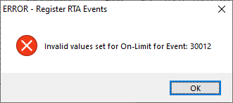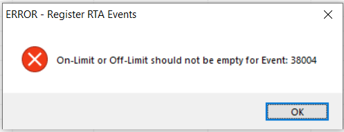 Attempting to register into events without setting on-limit or off-limit (where applicable) display an error message. Example of message is below.
