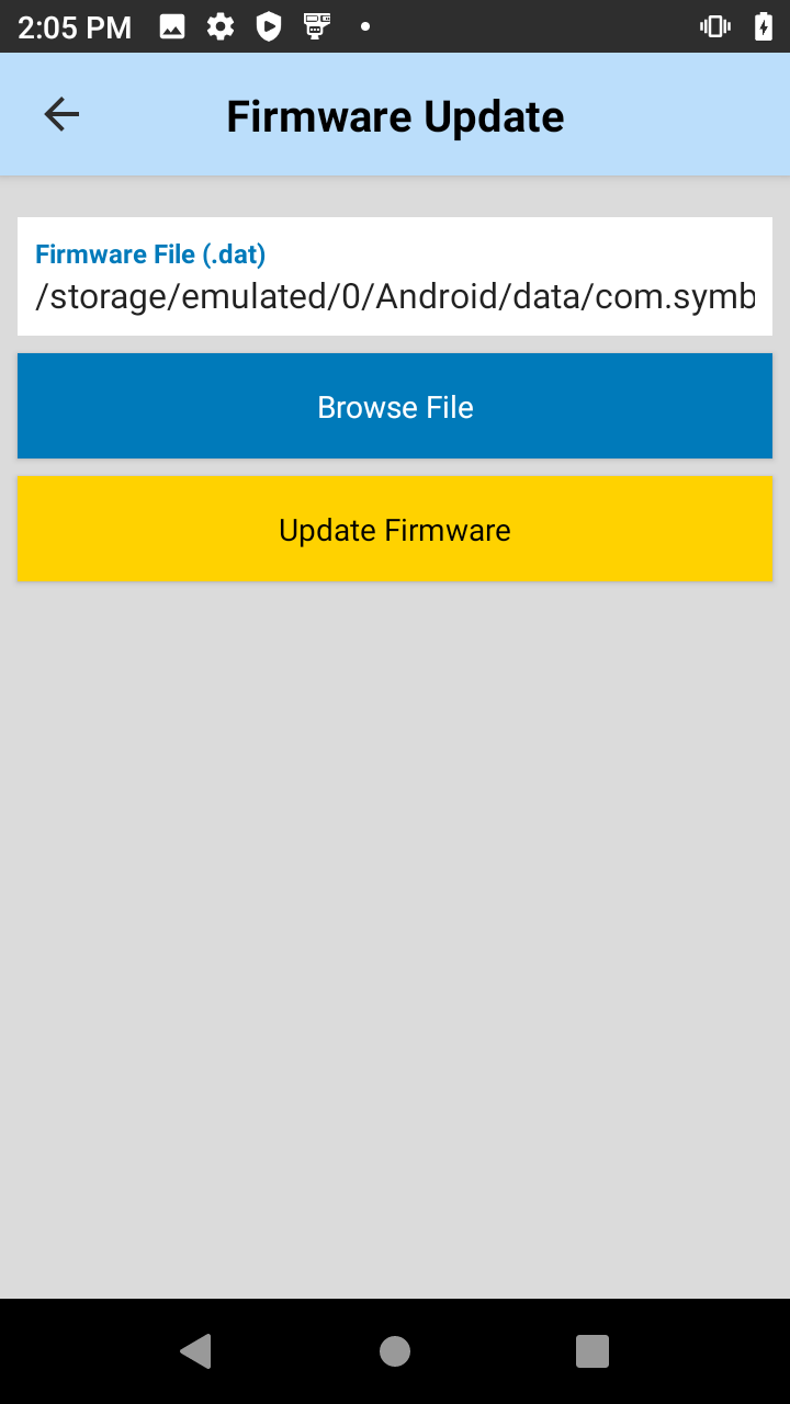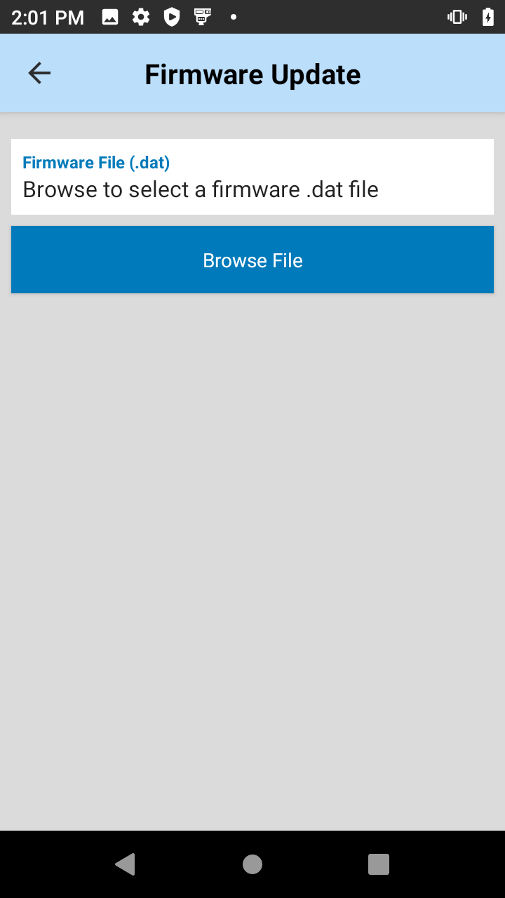 Tap on Browse File. Navigate to the file location and select the firmware update file.