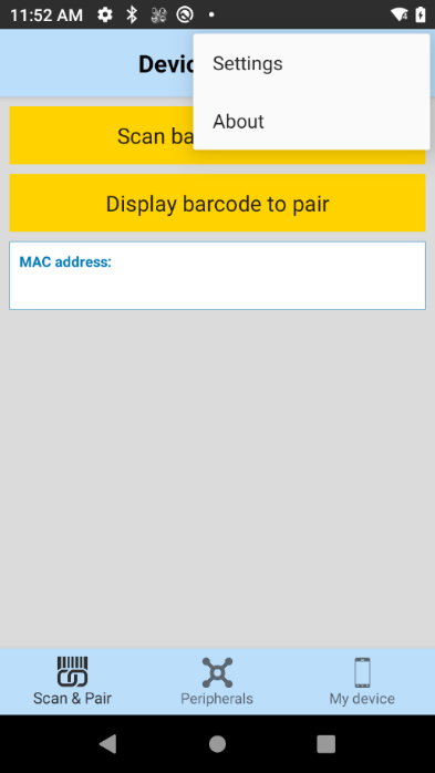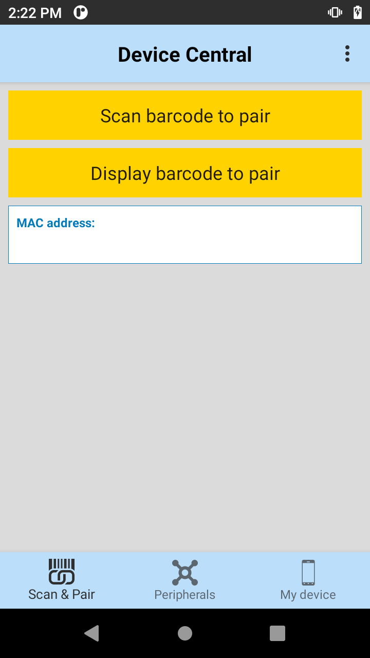 - Manually Pair: Manual entry of the peripheral Bluetooth MAC address.