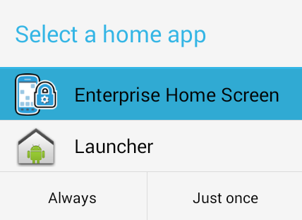 Selecting "Always" locks EHS in as the default home app and locks users out of the following device features by default:
