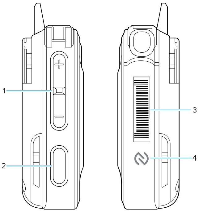 4 P1 programmable button Sends an event to a registered app (unprogrammed by default). Zebra recommends programming this button for push-to-talk function.