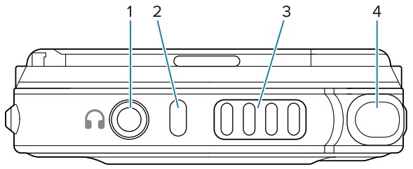 1 3.5mm audio jack* Input for headphones or headset; supports push-to-talk functions.