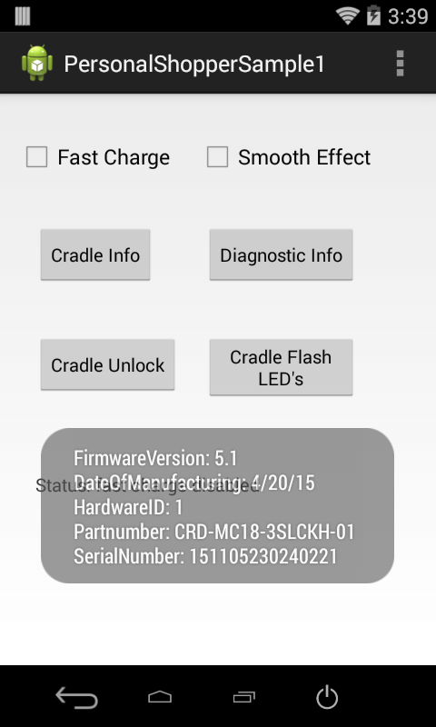 This sample application shows how the Personal Shopper APIs can be used to interact programmatically with the device cradle.