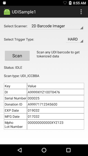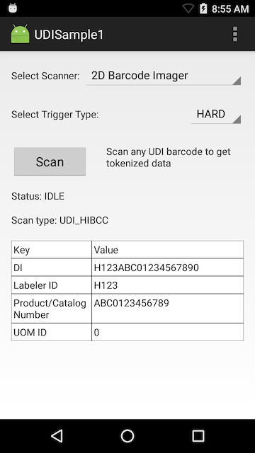 This sample app demonstrates how to scan barcodes that use any of the three Unique Device Identification (UDI) standards: GS1, ICCBBA, and HIBCC.