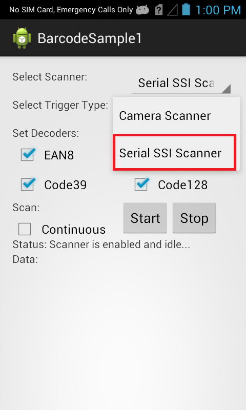 This sample application will allow you to scan barcodes based on selected scanner device, trigger type and few decoder Decoder Params.
