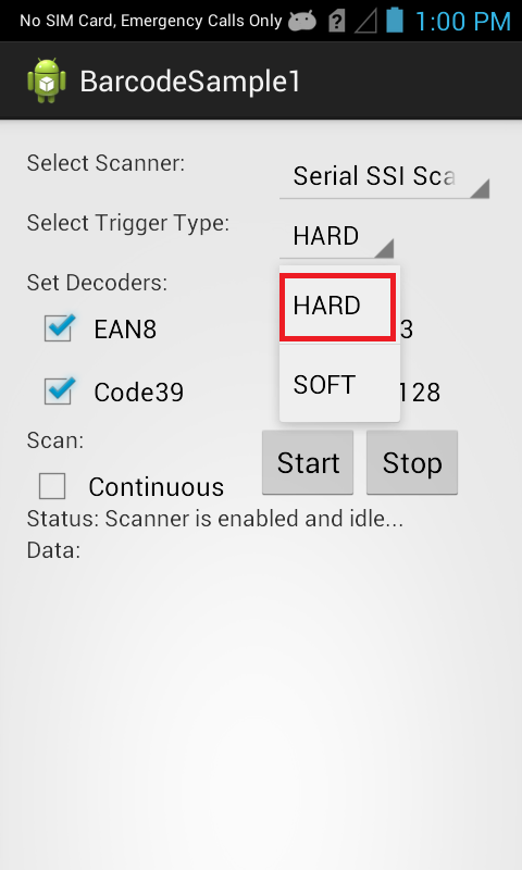 Note: Trigger Type "HARD" lets you scan the barcode using device's hard scan key whereas "SOFT" allows you to scan without using device's hard scan key.