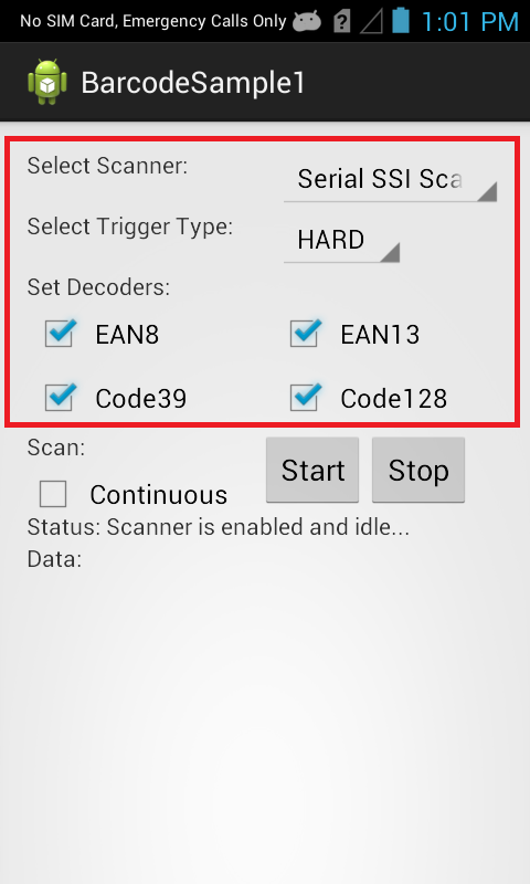 This sample application will allow you to scan barcodes based on selected scanner device, trigger type and a few decoder Decoder Params.