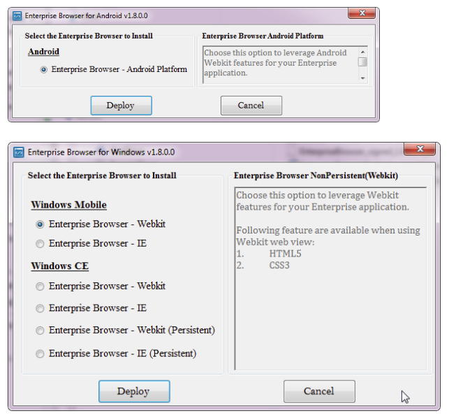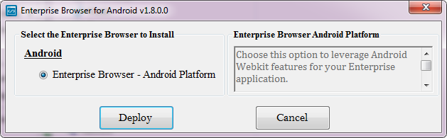 This section describes installation of the "Enterprise Browser for Android" deployment tool on a Windows PC. The installation process is similar for "Enterprise Browser for Windows," which is used to deploy EB to devices running Windows Mobile/CE.