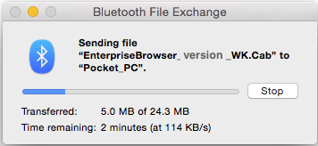 The preferred deployment method of Enterprise Browser runtimes from a Mac OS host system to Windows Mobile/CE devices is using Bluetooth.