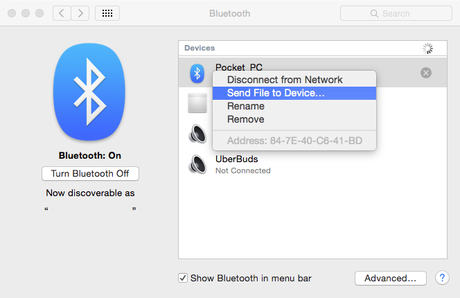 3. Right-click the newly paired device and select "Send File to Device..." (as below).