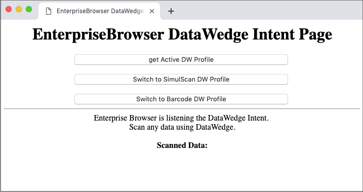 Apps running on Enterprise Browser 2.0 (and later) can control DataWedge–Zebra's built-in scanning engine–using DataWedge intents. This makes it possible to adjust DataWedge settings from an EB app to adapt to changing data acquisition requirements without exiting the app.