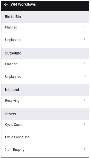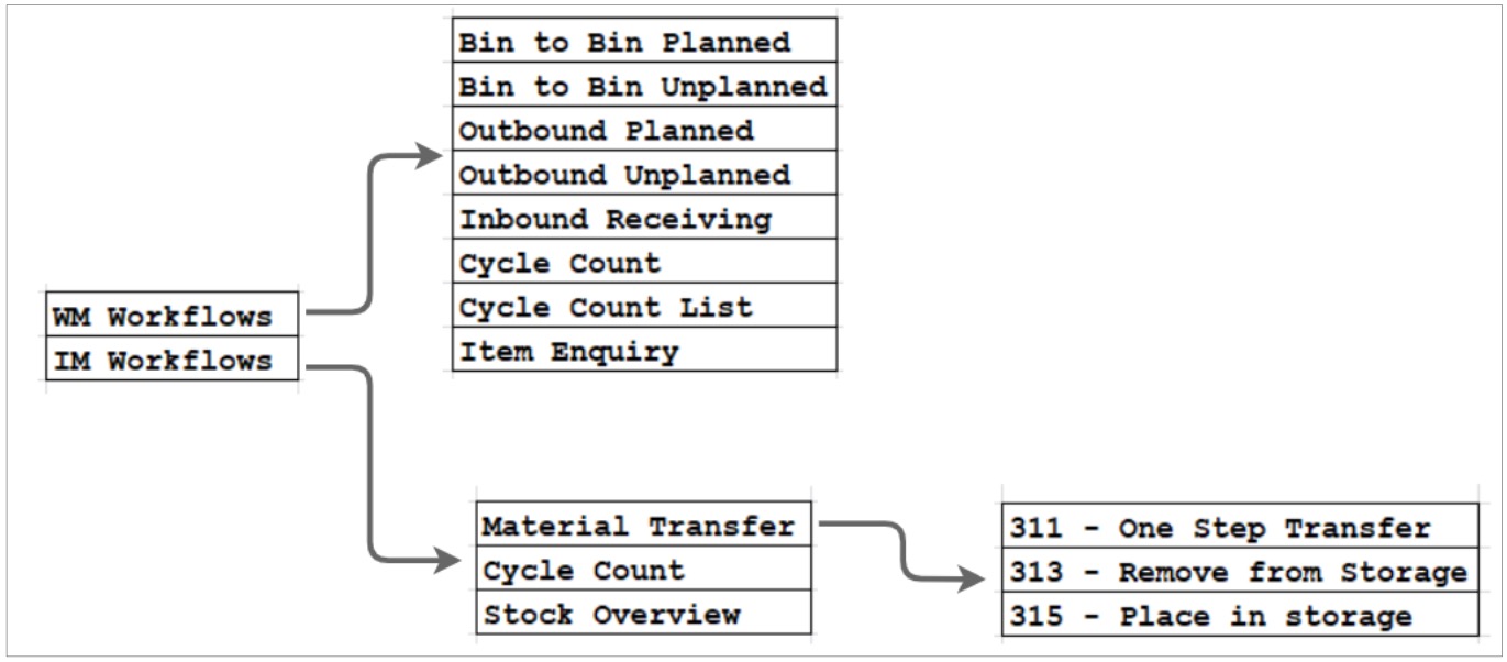 This app implements eight workflows for warehouse management and five for inventory management.