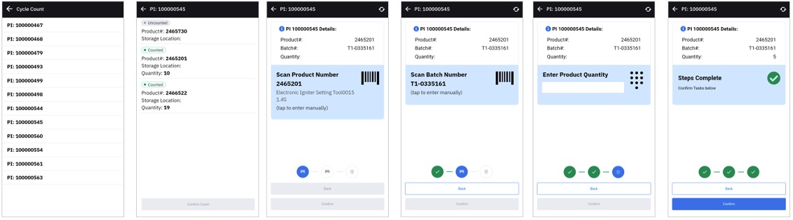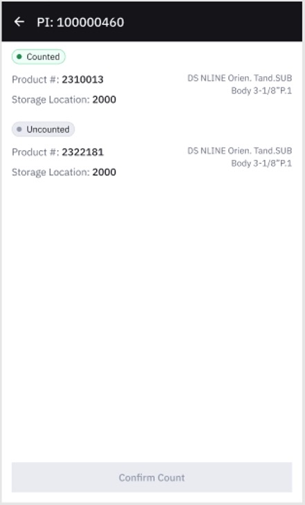 • App collects all physical inventory items with a count pending and displays a list