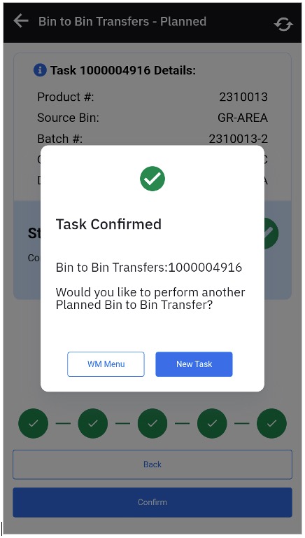 • User selects Bin-to-Bin Planned