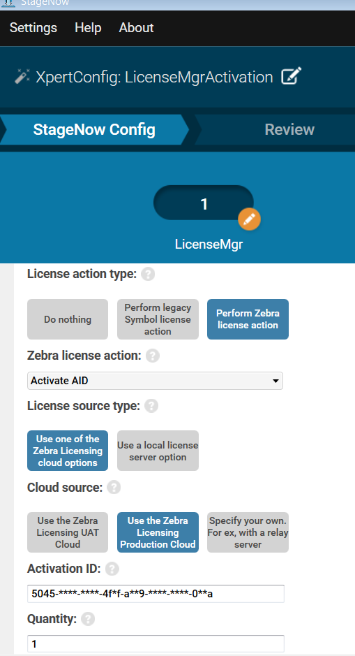 Zebra recommends this option for the best device visibility from the licensing portal:- Zebra license action: Activate AID -> select "Use one of the Zebra Licensing cloud options"