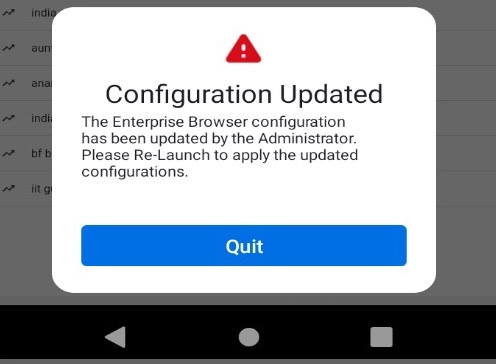 • When config changes are detected by a running EB app, the following message is displayed on the device: