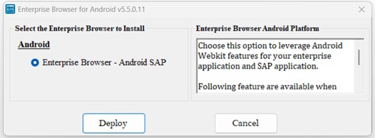 - Select Enterprise Browser as the app to deploy.