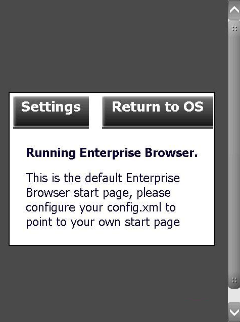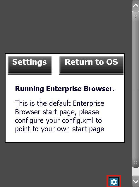 Press the "Return to OS" button to skip settings configuration and bring up the operating system. To display the Settings button again, simply relaunch the Enterprise Browser app.