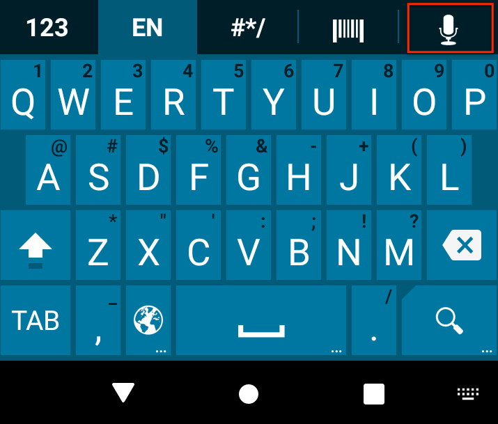 • Voice input key displays a key for allowing Enterprise Keyboard to accept spoken input using the device microphone (on GMS-enabled devices only). Google Voice Typing must be enabled to use this key (see Language and input > On-screen keyboard panel). Also see voice input notes.