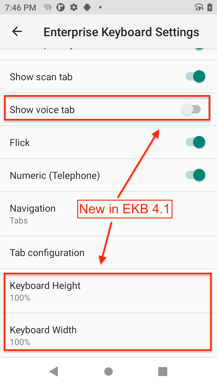 • Keyboard height and width are configurable ONLY through Managed Configurations or the EKB Preferences panel on the device (see screenshot above).