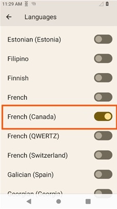 3. Tap one or more languages to make them available for selection by the device user: