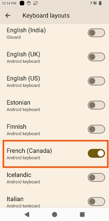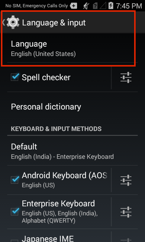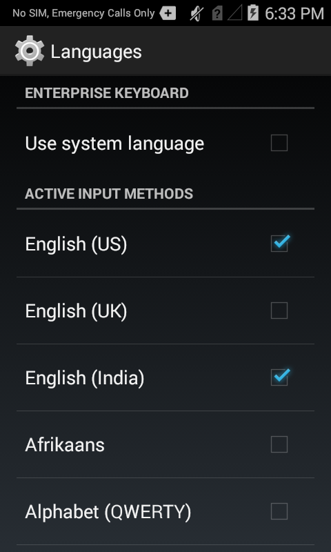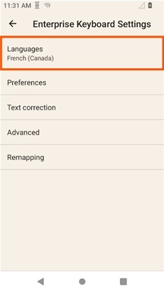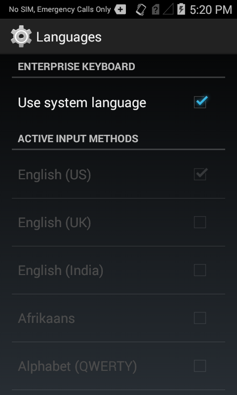 By default, Enterprise Keyboard uses the language selected in the "Language and input" section of the Android Settings panel: