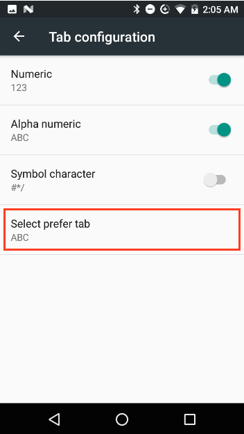 • Show scan tab displays a tab for switching to the scanner to collect barcode data. Disabled by default.