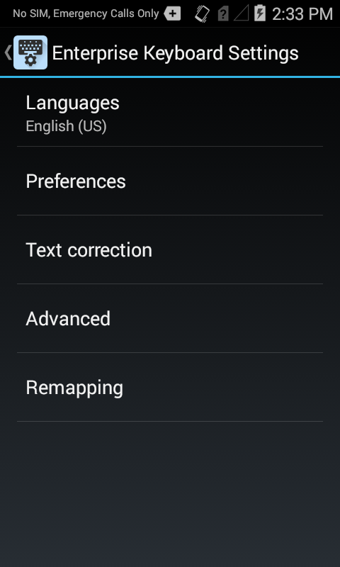 Enterprise Keyboard Settings are accessed through the Android Settings panel: