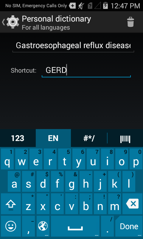 3. Enter the word or phrase (and shortcut, if desired), then tap the gear icon to save.