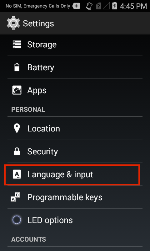 2. Tap the "Language and input" control: