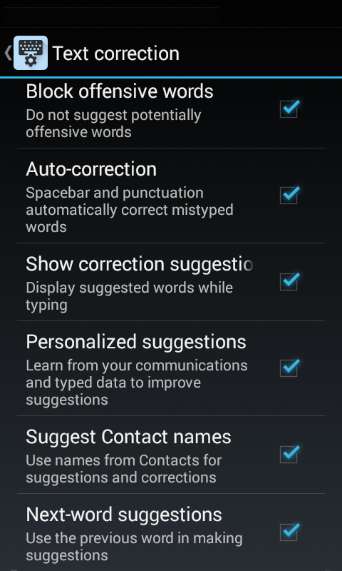 • Voice input will NOT output offensive words, even if the "Block offensive words" feature is disabled.