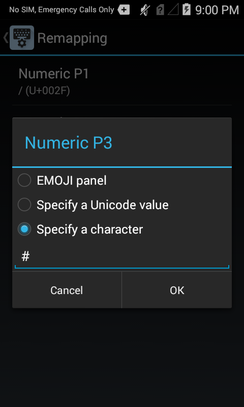 • Enabling the Symbol tab disables remapping of the Numeric P3 key.