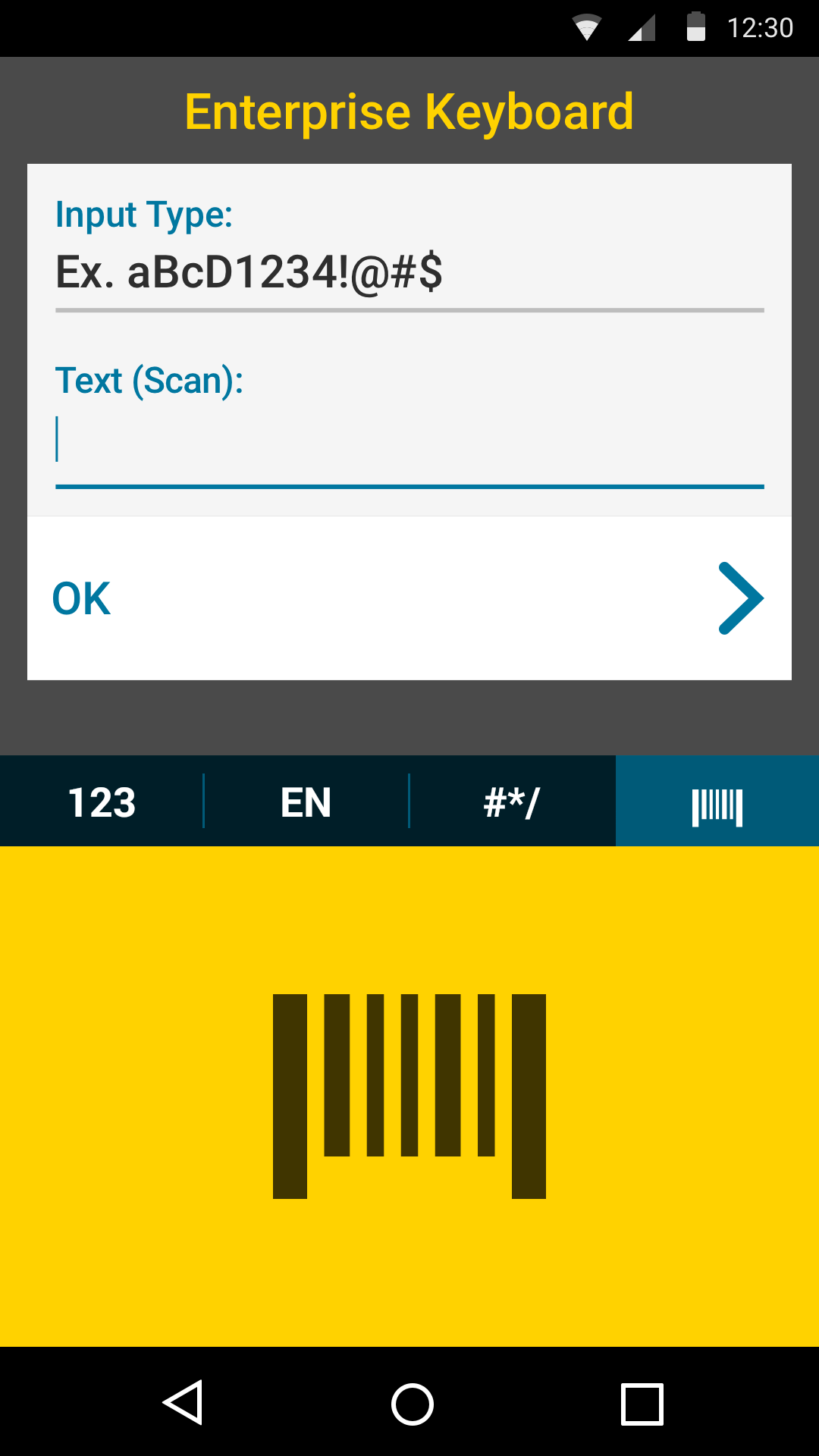 For more information about scanning with Enterprise Keyboard, see Enterprise Keyboard Setup.