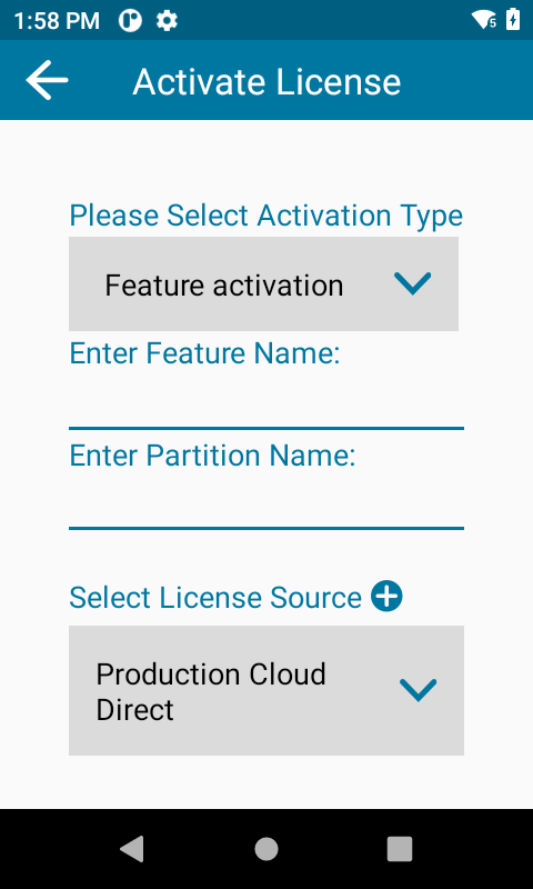 4. In the "Select License Source" screen, enter/select the following and tap Submit:
