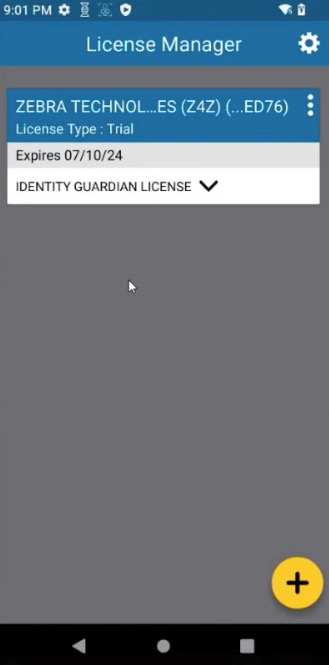 2. Tap the + icon at the bottom right to add a license.
