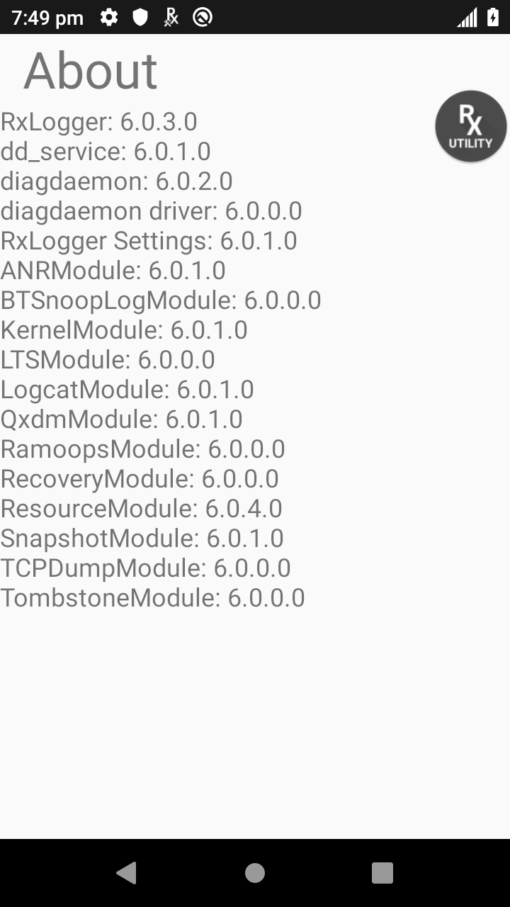 Tap the "About" button for a list of active RxLogger modules: