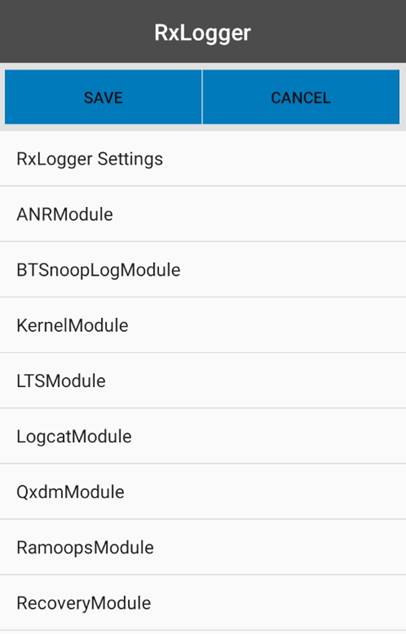 • Enable debug logs - If enabled, the debug logs from RxLogger and Diagdaemon are collected in the location specified in the Settings File section. After enabling/disabling debug logs, tap the back button, tap Save and then reboot the device for the change to take into effect. By default, this option is disabled.