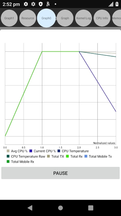 Snapshots are detailed logs of system resources, network, file system, power, usage statistics, etc. Snapshots are intended to provide a second level analysis based on information obtained from Logcat. They are recorded once every 30 minutes by default, but the logging frequency can be configured through RxLogger settings. The Snapshot module expands to reveal multiple submodules. Once expanded, tap on the submodule to view the realtime log corresponding with the submodule.