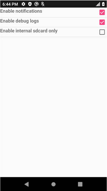 • Enable notifications - If enabled, RxLogger icon is seen in the notification bar when running. This is helpful to determine whether RxLogger is running in the background. By default, this option is enabled.