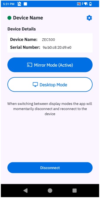 Wireless Workstation Connect allows mobile devices to share ZEC500-connected peripherals as if physically docked.