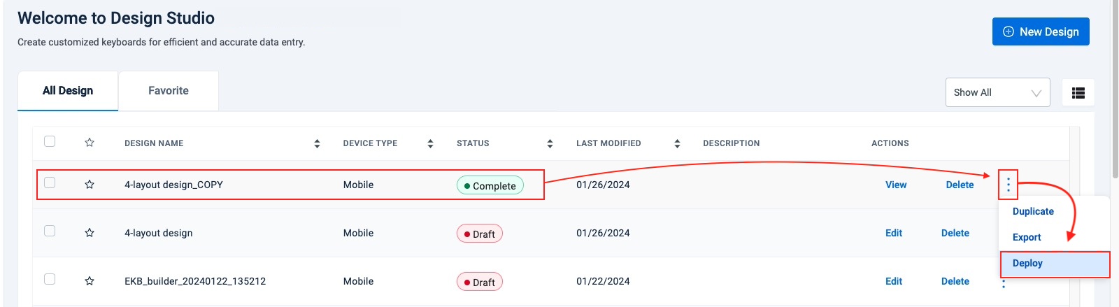 • To display EKB Design Studio layouts on a device, Enterprise Keyboard must be installed on that device and set as the default input source.