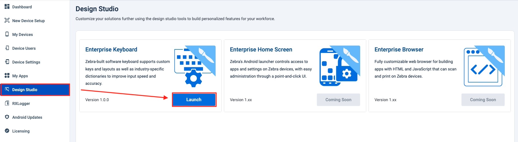 1. From the Design Studio section, launch the Enterprise Keyboard Design Studio utility: Click image to enlarge; ESC to exit.