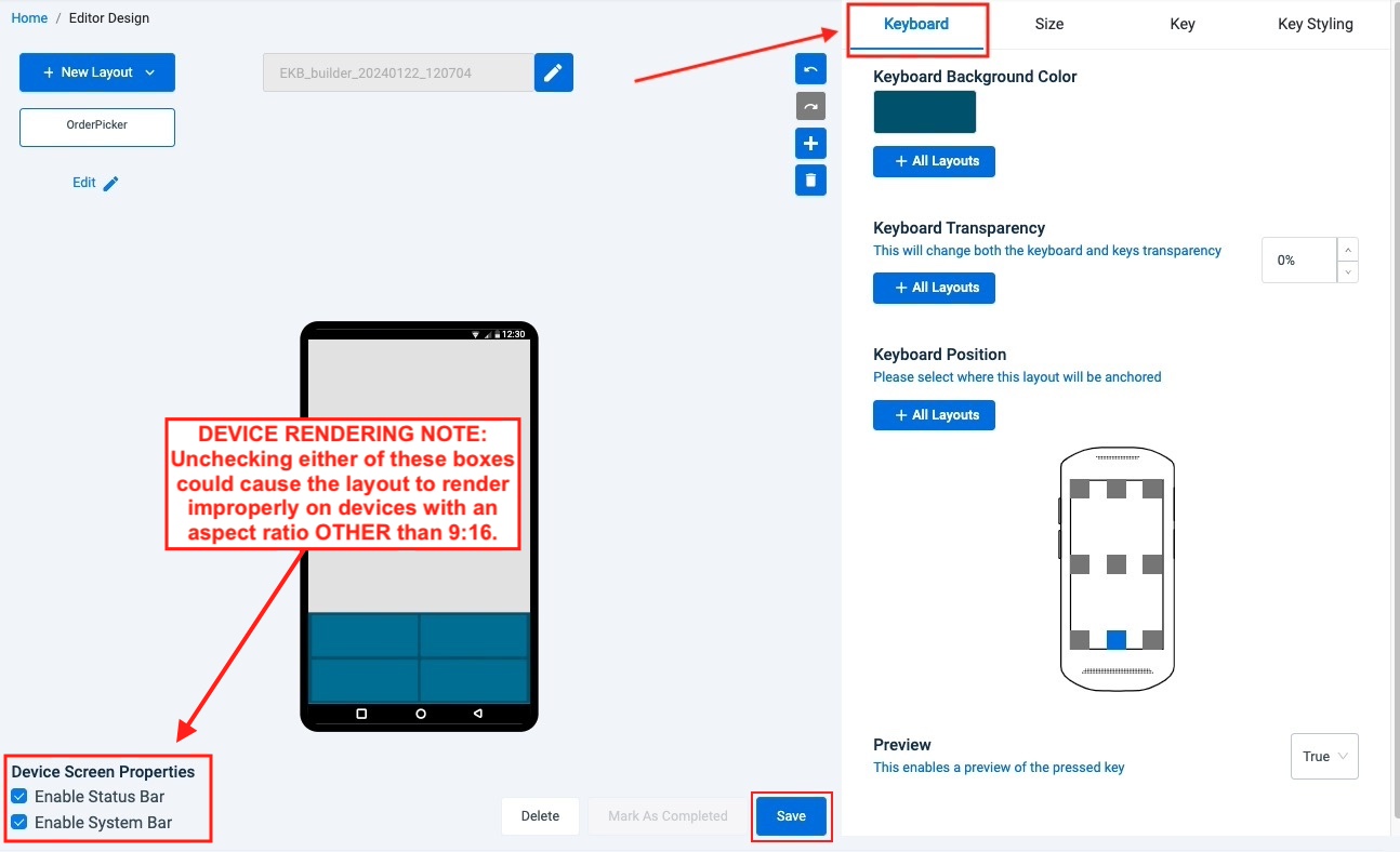 c. Keyboard Position (controls where layout is anchored on device screen)