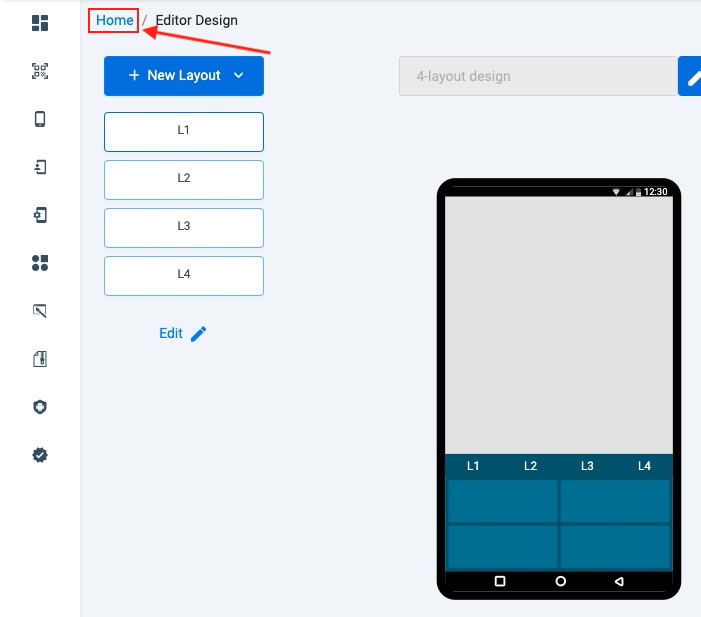 • In the layout editing panel the upper-most layout is displayed by default when the design is invoked on the device.