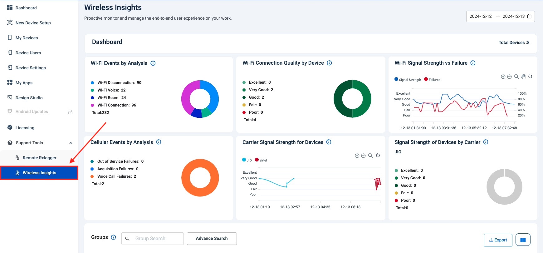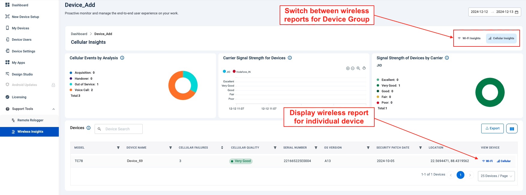 Click "Wireless Insights" to view the interactive Wireless Insights Dashboard.